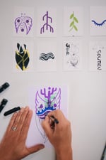 Jeu de 59 cartes : 30 en couleur et 29 en noir et blanc. Je les ai imaginées pour faire des guidances dessinées : vous tirez des symboles en couleur et les faites correspondre avec des symboles en noir et blanc. Vous dessinez ce que les symboles vous inspirent et voyez ce qui se passe en vous, et le message que vous laissez émerger. Une manière créative de se connecter à soi. Vous pouvez aussi bien sûr juste les tirer comme un jeu d'oracle ! Livré avec un livret qui explique les symboles tels que je les ai imaginés.