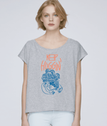 Manches kimono. Encolure large dégagée. 100% Coton bio.